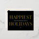 Make a lasting impression this holiday season with our premium corporate Christmas postcard. Featuring the phrase “Happiest Holiday” in real shimmering gold foil on a luxurious black background, this elegant design highlights your company name and logo on both the front and back for a polished, professional look. The back includes space for your return address and personalised message, perfect for expressing gratitude and strengthening business relationships. Ideal for small businesses, real estate agents, law firms, and corporate teams, this gold foil Christmas reflects your brand’s refined taste and commitment to excellence.