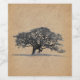 A black and white photograph of an impressive oak tree. Add your text to personalise your label.