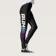 These black sports leggings feature a white typography "RUN" slogan with blue and purple ombré block stripes which run down the length of each leg. The simple and trendy design is perfect for the gym, yoga, dance and general keep fit activities and will also add a touch of glam to your workout. Matching items are available so please view below for more details.