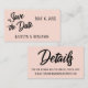 Keep your wedding guests in the loop with all your plans with these detailed wedding favour insert cards. These cards reflect an elegant, casual style. Pretty text overlays were designed using a modern, bold, casual script font in black. One side reads "Save the Date" and the other simply says "Details". Use the template fields to customise these enclosure cards with your personal information. Printed using "business card technology" the handy size will be easy to keep on hand. Mail them with your traditional mailings, and keep a few around to share with those who need an extra or two! The background is covered in a pretty blush pink and this editable colour can be changed to anything from your wedding palette that you choose; all editable text appears in a complementary black. // 89 // Designed by Melody Watson for Paper Muserie.