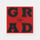 GRAD in bold black lettering fills the corners of these scarlet red background graduation party napkins. Congratulations above the name of your graduate and the Class of below. The perfect addition to your table decor for upcoming grad parties. MATCHING items in our store.