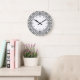 Black on White Damask Pattern Large Clock