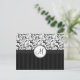 A seamless digital floral pattern of black and white on top, and aged vintage black satin style stripes image on the bottom, with a ribbon overlay and a customisable monogram text seal.