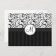 Black on White Floral Wisps, Stripes & Monogram Postcard