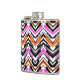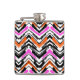 Black, Orange, And Pink Hand Drawn Chevron Pattern Hip Flask