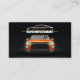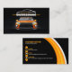 This design features a bold black background with a vibrant orange and white accent, perfectly capturing the spirit of the automotive industry. The front boasts a stylish curved design, while the back showcases a captivating image of a sleek vehicle, setting the tone for your professional brand.