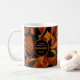 This basketball team colours coffee mug features a bunch of basketballs arranged in a random, 3-dimensional-look pattern overlying the image of a single abstractly oversized basketball - two panels of each basketball in the pattern are recolored--one black and one orange - customise the coach's name on one side of the mug and the team's name, school name and sports season/year on the other - by katz _d_zynes