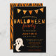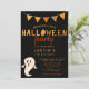 Cute black and orange with adorable ghost illustration Halloween Party for kids birthday invitation.