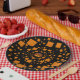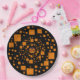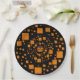 Black orange evil pumpkin float squares Halloween Paper Plate