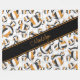 This cute volleyball team colours fleece blanket for girls features a pattern of varied size stylised black, orange and white volleyballs turned every which way overlying a volleyball net detail graphic - the volleyballs' black and orange panels are blended with an artsy, girly floral pattern - personalise her name in a sophisticated handwritten font on a bold, angled, full width black colour strip - background and name strip colours are customisable - by katz_d_zynes