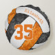 This fun volleyball themed pillow for girls with custom team colours features the realistic stylised image of a black, orange and white volleyball that has an artsy floral kaleidoscopic pattern blended with its black and orange panels - personalise with her name and jersey number - by katz_d_zynes