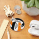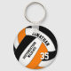 This personalised boys' volleyball keychain with team name features the realistic image of a black, orange and white volleyball upon which you can customise the player's name and jersey number plus school team and mascot name - by katz_d_zynes