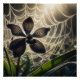 A mysterious and beautiful black orchid against the backdrop of a spider web brings magic to the day.