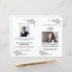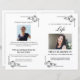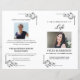 Classic black and white funeral program with beautifully ornate corner details. This template includes space for a large photo on the front and back page, a photo above the obituary text on the inside page and an order of service. All text and photo images can be customised so whether you choose to use this layout or customise it to your own preference, it's easy to create a beautiful program for your loved one.