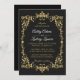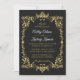 Timeless and elegant Black wedding invitation. This ornate wedding announcement features a faux gold scroll wedding border with black background. Text features Couples' names in white flowing script. Other text in black letters. Fits best on vertical 5x7 card. -------------------- Original wedding invitation designs by graphic artist, Paula Bragg. In addition to wedding invitations & announcements, the designs are available for wedding programs, save the date cards, menus, table place cards, thank you cards, RSVP cards and more. Personalise them for your marriage ceremony, reception, bridal shower, rehearsal dinner, engagement party and other events.