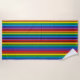 Abstract digital art of rainbow coloured stripes outlined in black.