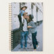 Elegant personalised planner printed with your photo on the cover. Write the year above a hand-drawn half wreath of leaves and berries. Add your name in a black font beneath. The back features chic stripes in white and black.