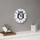 Wall clock black and white owl design. You can customise this wall clock with any text of your choice. Should you require any help with customising then contact us through the link on this page. Owl design wall clock.