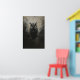 Black Owl with Red Eyes on Branch in Woodland Fore Poster