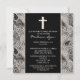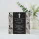 Start your event off right with our trendy black & white paisley baptism / christening invitation. Invitation features a beautiful black & white paisley print background with a white cross. Easy to customise, just add your event information and you're all set to go.