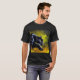 I give wanted to give this a 4 instead of a 5 because these Basic DARK T0shirts run unexpectedly SLIM or Narrow. Which is great if you do not have a potbelly, but I have a paunch. It isn't the shirt's fault that I've got a beer belly. The design and shirt itself is a quality cotton shirt. The color is more of a deep purple, but still a very pretty color. The Basic DARK T-shirts run a bit SLIMMER than the Basic Ts. The neck is a fraction narrower (or seems to be narrower) also. I'm a paunchy middle-aged woman and my neck is 12 inches (31cm) thick and the neckline fell about the same as in the photo of the man, and I had the desire to tug it a bit. So if you're a thick necked man or like loose shirts, be aware these are slimmer shirts. Once I get rid of my lockdown paunch it'll look great. The shirt washed well in cold water with no apparent bleeding. We don't have a dryer, so it hung dry. Did not shrink. Love the colors and the design. The design looks smaller on my shirt than it does on the model on-line. But still, it looks good on the shirt. The printing looks as it does on the model, just the size seems fractionally smaller. Washed garment in cold water, hung dry and design appeared unaffected.