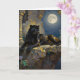 A black panther themed birthday card for anyone. Inside is a sentimental message that you can leave or edit. On the front is an illustration of a majestic black panther with fur like molten black and gold, laying on a cliff ledge bathed in ethereal moonlight. Intricate carvings adorn crumbling stone pillars, and bioluminescent flora casts a soft, otherworldly glow. The scene is rendered in a rich, textural oil painting style with thick, .