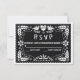 Black papel picado love birds and flowers wedding RSVP response card displaying two love birds and a love heart, the word love and flowers. This Mexican folk art style floral wedding design is totally customisable. Note that this is not really laser cut paper just printed images.
