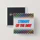 This design features a pattern of lines (or stripes) coloured various pastel colours, with black lines in between them. It also features the message "STUDENT OF THE DAY!".