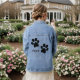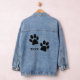 Black Paw Prints Design on the back of this Denim Jacket with customisable text to change or delete.. Select your appropriate size from the drop-down menu.