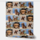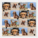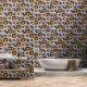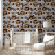 Personalised peel and stick wallpaper printed with a repeated pattern of your dog or dogs with little black paw prints sprinkled over the photo pattern. Photo pattern wallpaper with four photos of your dog repeated over and over and little black paw prints. Dog themed wallpaper personalised with four photos of your pup in a repeated pattern.