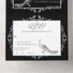 Invite guests to your upcoming wedding with a Black Peacock Flourish All in One Wedding Invite. Invite design features an elegant peacock adorned with flourishes with a perforated response card. Personalise with the groom and bride's names along with the wedding date and location. Additional wedding stationery available with this design as well.
