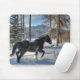 Black Percheron in Forest and First Winter Snow Mouse Mat