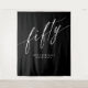 Elegant 50th birthday tapestries with large "fifty" text in a handwritten script font. Add your own personalised text below. Contrasting white font on black.