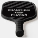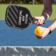 Our Black Personalised Pickleball Paddle has a black and grey modern stripes design with an inspirational quote for those competitive and motivated players—perfect gift for him, your husband, or your father.