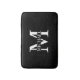 featuring personalised white monogram in classic serif font style with box of name in the middle of monogram on black background.