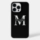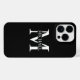 featuring personalised white monogram in classic serif font style with box of name in the middle of monogram on black background.