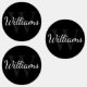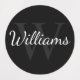 feature personalised name in white script font style and monogram in grey serif font style as background, on black background.