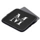 featuring personalised white monogram in classic serif font style with box of name in the middle of monogram on black background.