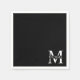featuring personalised white monogram in classic serif font style with box of name in the middle of monogram on black background.
