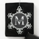 featuring personalised white monogram in classic serif font style with box of name in the middle of monogram on black background.