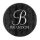 features personalised monogram in white classic script font style and name in white classic serif font style on black background.