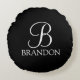Black Personalised Script Monogram and Name Round Cushion