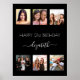 For a woman's 21st (or any age) birthday, celebrating her life with a collage of 6 of your high quality photos of her, her friends, family, interest or pets. Personalise and add her name, age 21. A classic black background. Her name is written with a modern hand lettered style script with swashes.
