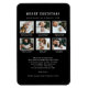 Black Photo Holiday Magnet. Elevate your heartfelt sentiments with our chic 'Merry Christmas' personalised photo holiday magnet card. This stylish keepsake, featuring a vintage typewriter font and space for 6 family photos, is a perfect blend of nostalgia and style. White text on a black background. Personalise and make your memories timeless!