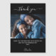A black background colour. White, large hand lettered script with swashes and the text: Thank You. Personalise and add your photo, thank you note and name.