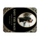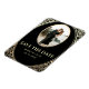 Elegant, luxury, vintage, chic, black and gold wedding save the date invitation magnet, with art-deco floral frame and photo of the couple.