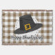 Black Pilgrim Hat on Brown Plaid - Thanksgiving Throw Blanket
