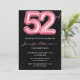 Black Pink 52nd birthday invitations Balloon Glam