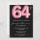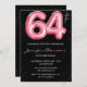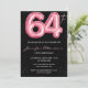 Black Pink Balloon Glam Glitter 64th birthday Invitation