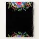 Floral recipe book in black with your name in white letters and a balloon whisk between floral arrangements in pink, blue, and purple.